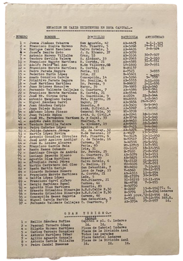 Listado de taxistas en 1957, según el documento que se custodia en el Archivo Municipal de Albacete.
