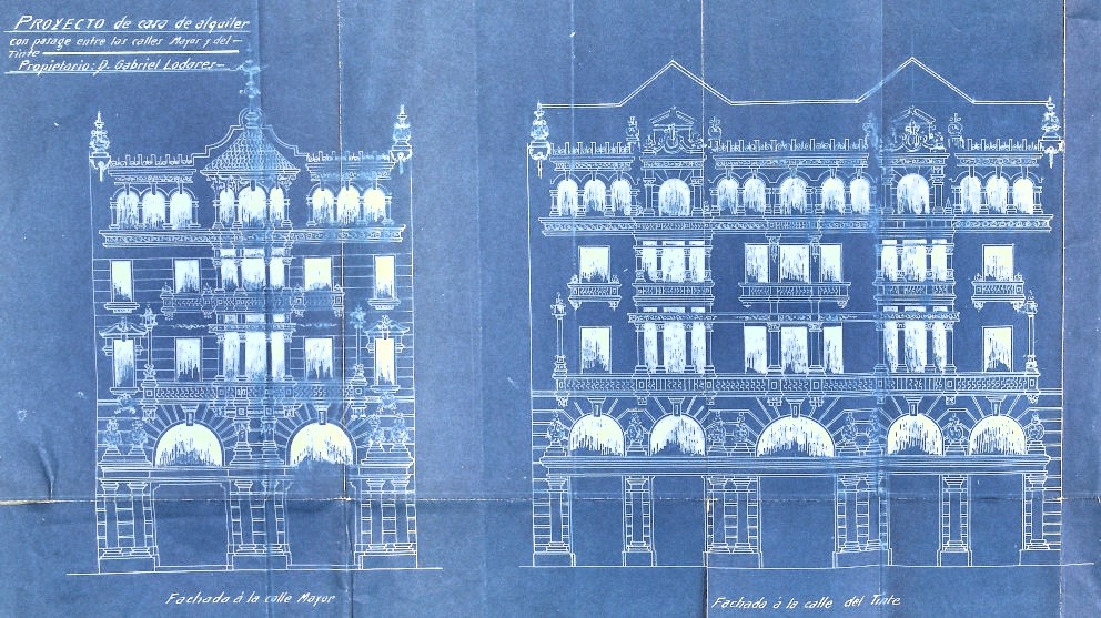 Y otro de los primeros edificios en disponer de ascensor fue el Pasaje Lodares, proyecto también del acaudalado Gabriel Lodares Lossa. Un complejo comercial y de viviendas de alquiler con el que su promotor quiso que la ciudad pudiera competir en cuanto a galerías comerciales con cualquier capital española o europea.