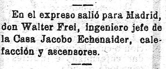 Otras empresas llegaron con el paso de los años, como la delegación local de Jacobo Schneider, especializada en saneamiento, calefacción y ascensores, y cuyo representante era Antonio Alcaraz Núñez, con su oficina en Martínez Villena 11. Uno de sus representantes, Walter Frei, abrió el camino a la compañía con visitas a nuestra capital.