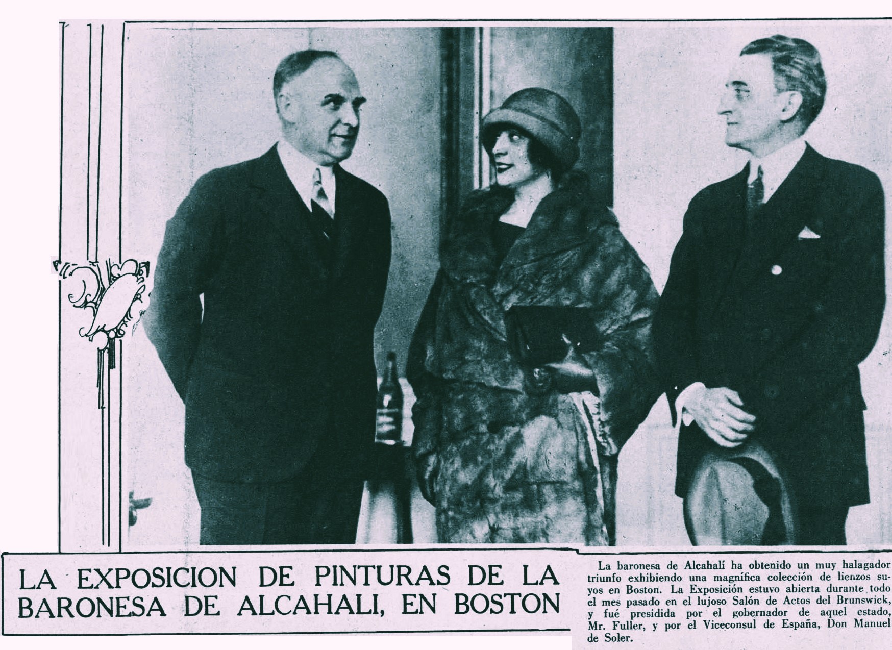 Noticia sobre su polémica exposición en Boston y autógrafo de quien también se presentaba como baronesa.